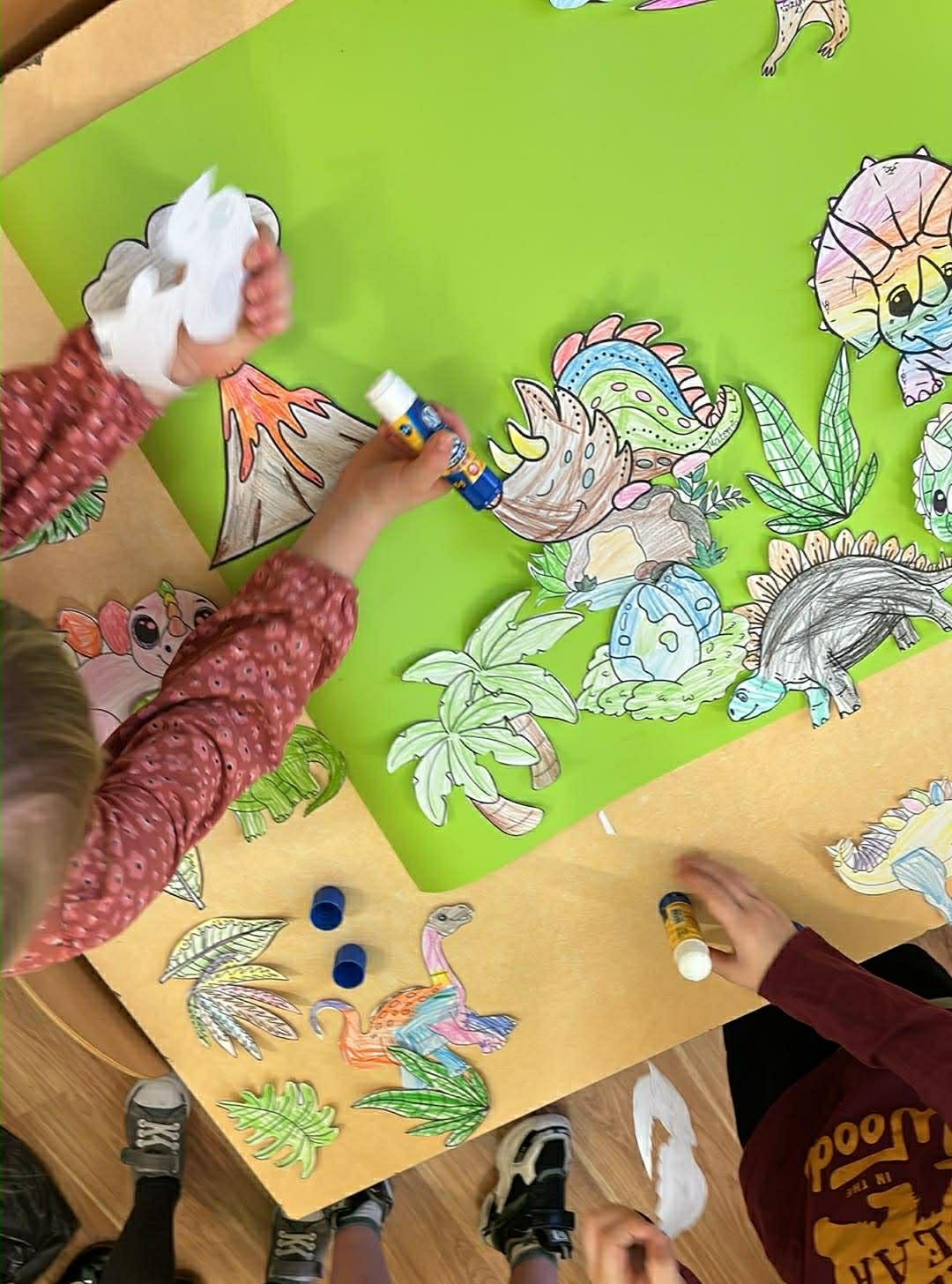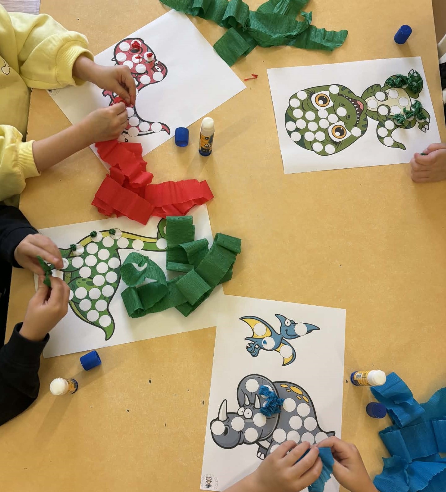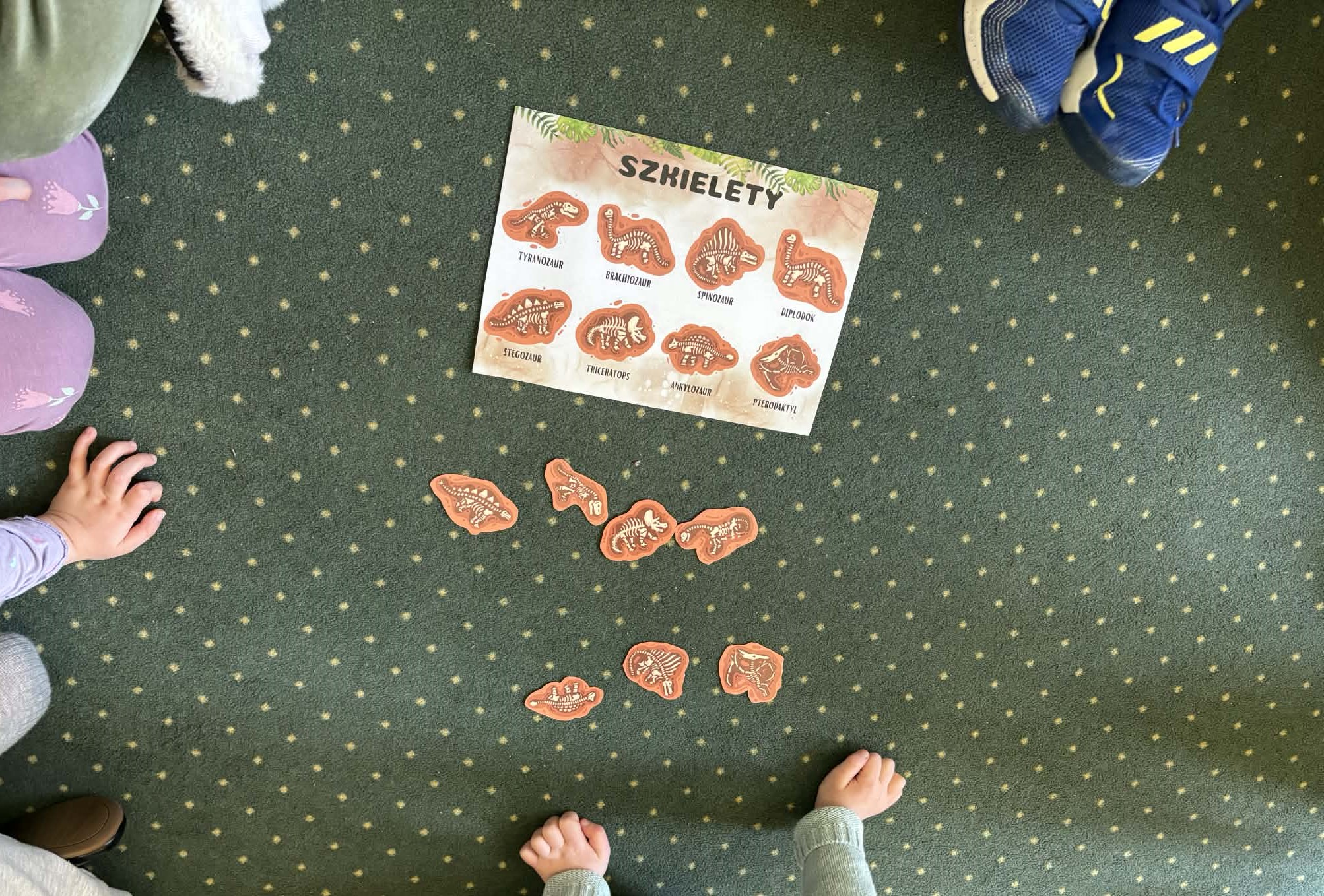 W ostatnim tygodniu lutego zapoznaliśmy się z historią węgla kamiennego i jego właściwościami. Poznaliśmy nazwy wybranych dinozaurów, dopasowywaliśmy nazwy do danego dinozaura oraz nauczyliśmy się krótkiej rymowanki. Nie zabrakło wspólnych zabaw popołudniowych gdzie układaliśmy sekwencje z jajek dinozaurów, dopasowywaliśmy szkielety dinozaurów do odpowiedniego obrazka oraz słuchaliśmy piosenek o dinozaurach. Wykonaliśmy dinozaury z papieru, które udekorowały nasz kącik tematyczny, wykonaliśmy kartę pracy gdzie robiliśmy kuleczki z bibuły i przyklejaliśmy je w brakujących miejscach. Grupowo wykonaliśmy prace plastyczną "Świat dinozaurów", każdy z nas pokolorował wybranego przez siebie dinozaura i przykleił go na wybrane miejsce. W czwartek świętowaliśmy Dzień Dinozaura z tej okazji każdy z nas dostał drewnianą figurkę dinozaura i pomalował ją według własnego pomysłu.