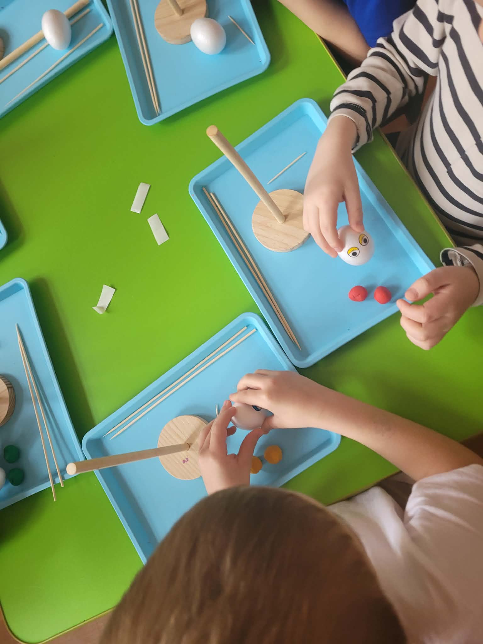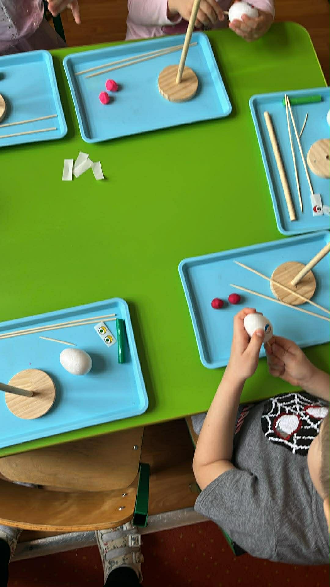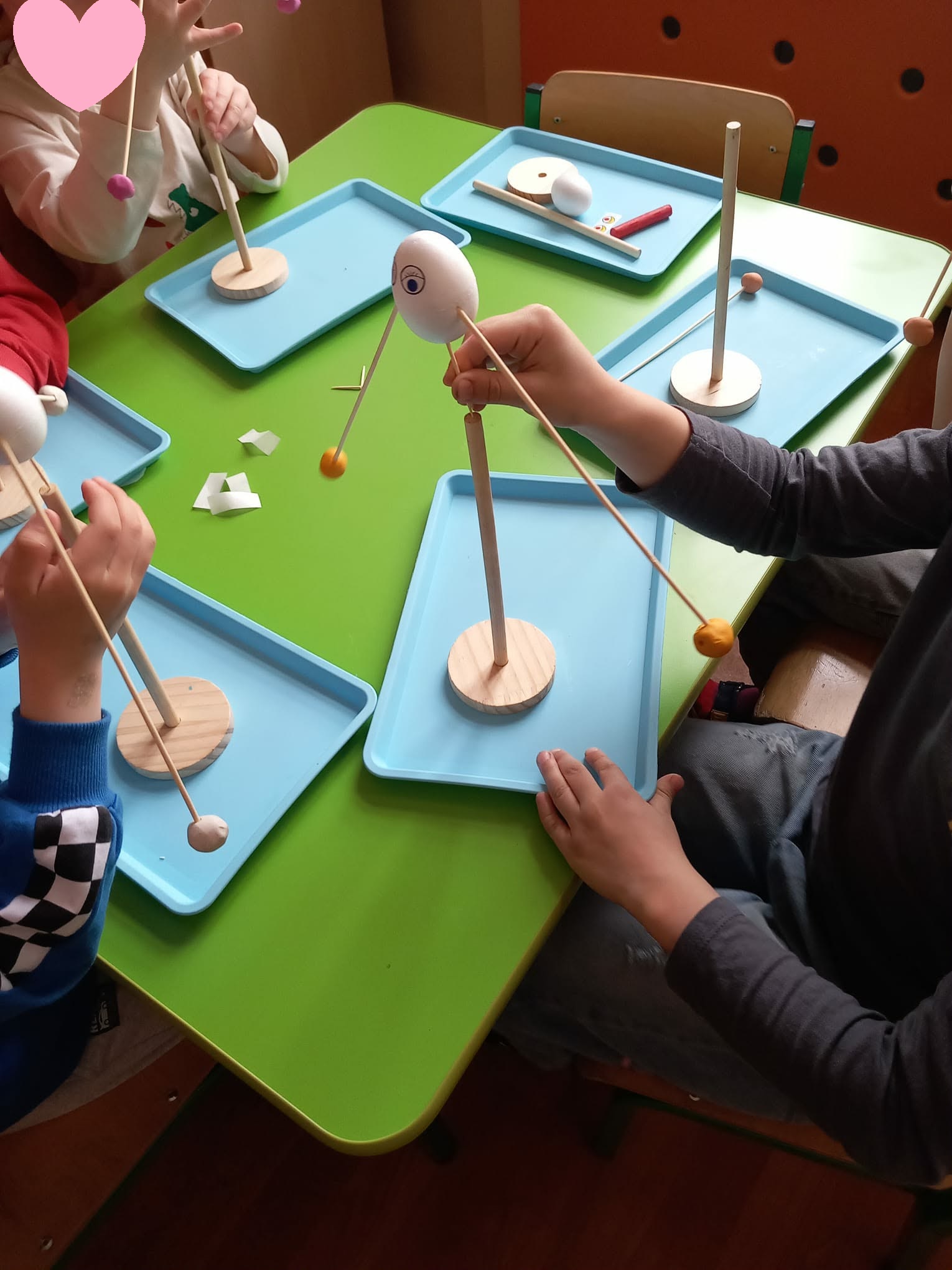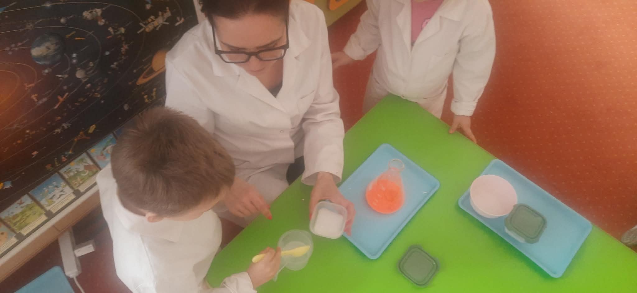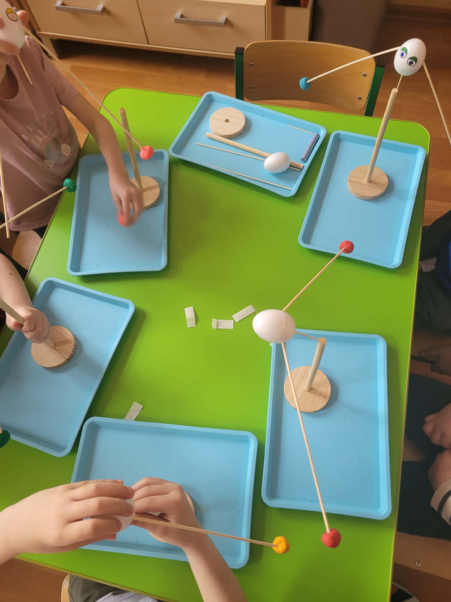 Dnia 13 kwietnia nasze przedszkolaki ponownie zamieniły się w naukowców i wyruszyły na pełną przygód misję badawczą. Dzieci wraz z panią prowadzącą odkrywały tajemnice jajka, obserwowały fluorescencyjny wulkan powstały z białka jajka oraz przeprowadzały eksperyment polegający na sprawdzeniu które jajko jest ugotowane, a które surowe. Na koniec dzieci ozdabiały styropianowe jajko, wbijały w nie patyczki i wykałaczkę oraz umieszczały je na drewnianej podstawce, żeby balansowało. Dzieci z ogromnym zainteresowaniem obserwowały zachodzące zmiany, a na ich buziach cały czas było widać zaciekawienie i zachwyt.