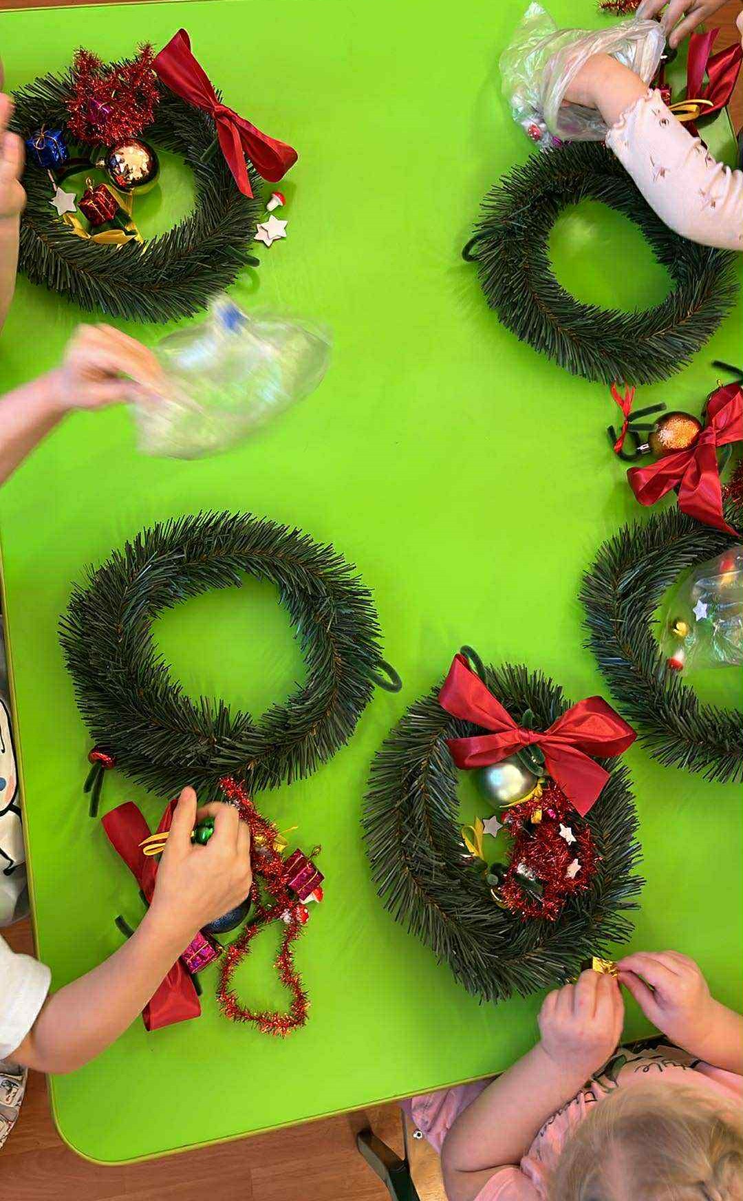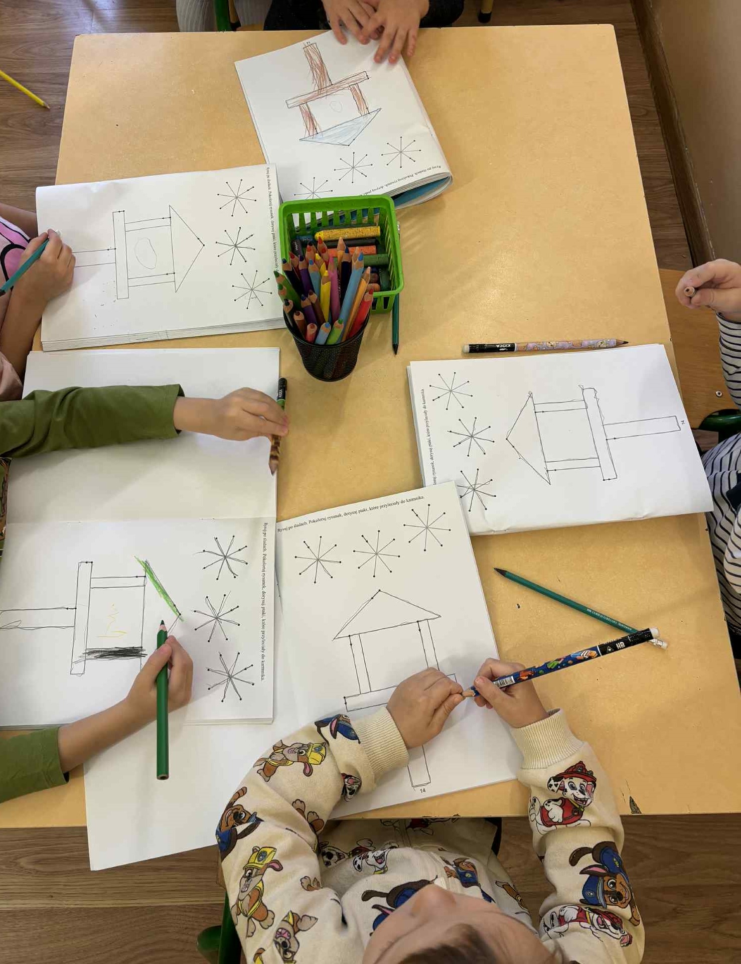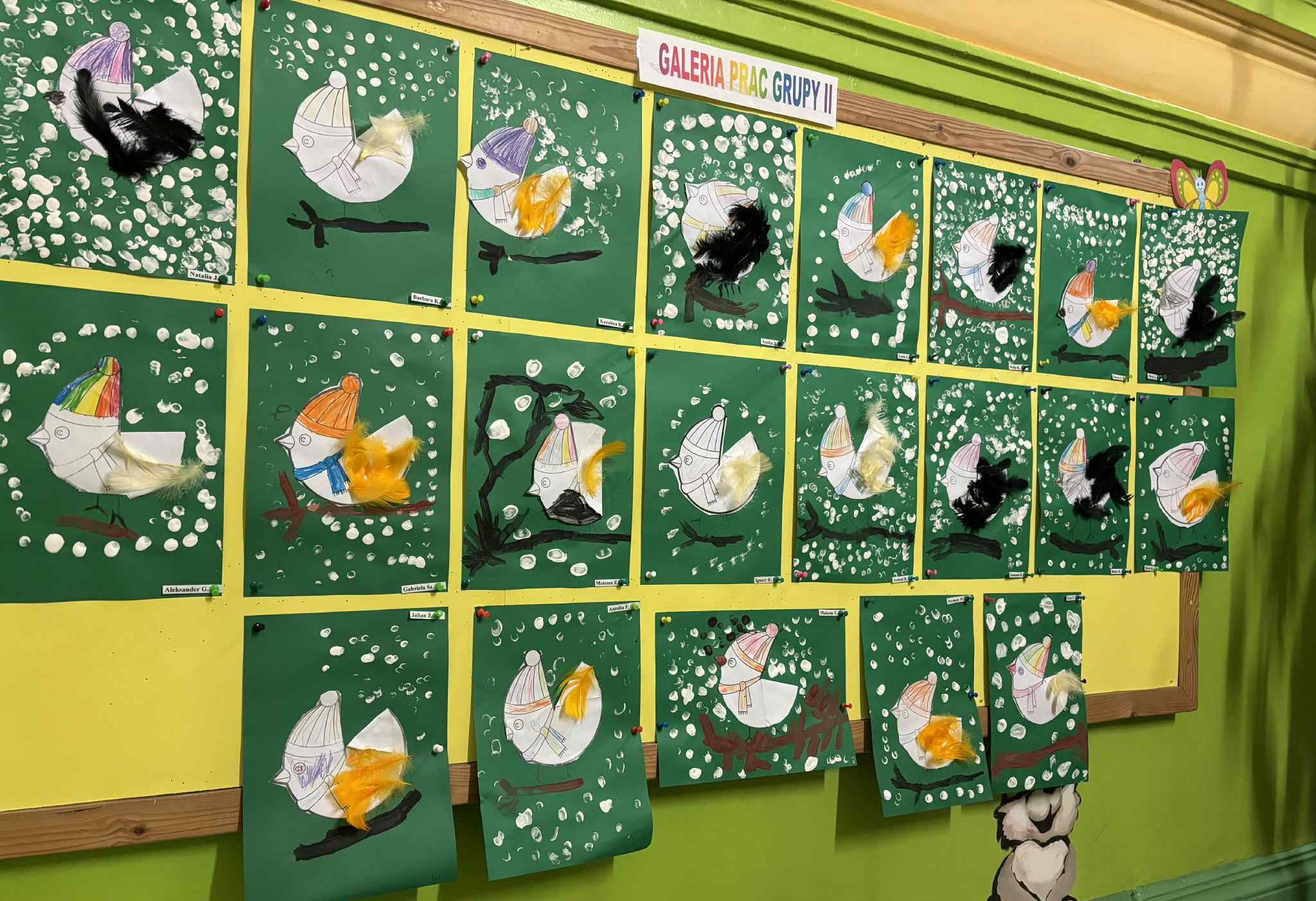 W drugim tygodniu grudnia opisywaliśmy na wybranych przykładach zwierząt jak radzą sobie podczas zimy, jak możemy pomóc ptakom przetrwać zbliżającą się porę roku oraz jakie zwierzęta zapadają w sen zimowy. Wykonaliśmy prace plastyczną "Ptaki zimą", gotowy element ptaka wycinaliśmy i przyklejaliśmy na zieloną kartę, udekorowaliśmy ptaszka wybranymi przez nas piórkami. Czapki i szaliki ptaszków kolorowaliśmy kredkami. Farbami malowaliśmy gałązkę, na której siedzi ptak i spadający śnieg. Pracowaliśmy w naszych książkach grafomotorycznych, a do piosenki "Nie miały aniołki choinki na święta" zrobiliśmy choinkę 3d, która pokolorowaliśmy według własnego pomysłu. W poniedziałek wybraliśmy się do pobliskiej biblioteki, gdzie braliśmy udział w zajęciach pt: "Tradycje Bożego Narodzenia". W piątek braliśmy udział w warsztatach świątecznych w przedszkolu, podczas których wykonaliśmy bożonarodzeniowe wianki.