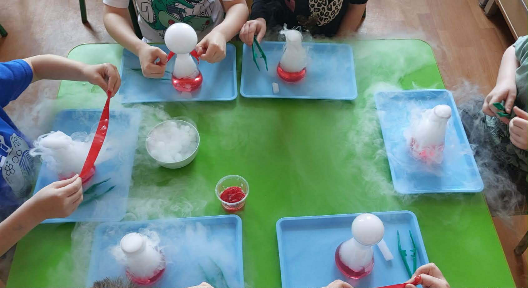Dnia 27 lutego w naszym Przedszkolu odbyły się warsztaty naukowe z suchym lodem w roli głównej. Dzieci miały możliwość zamienić się na chwilę w naukowców i odkrywców, którzy mogli zaobserwować wiele ciekawych zjawisk, m. in: sublimację suchego lodu. Ponadto przedszkolaki tworzyły bańki dymne, wystrzeliwały lodową rakietę oraz po prostu eksperymentowały.