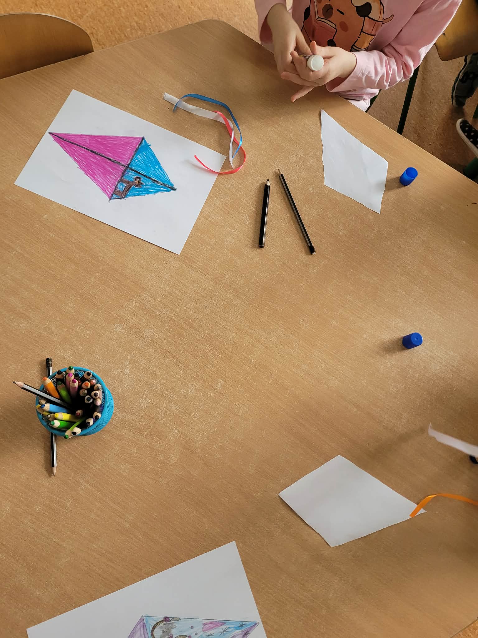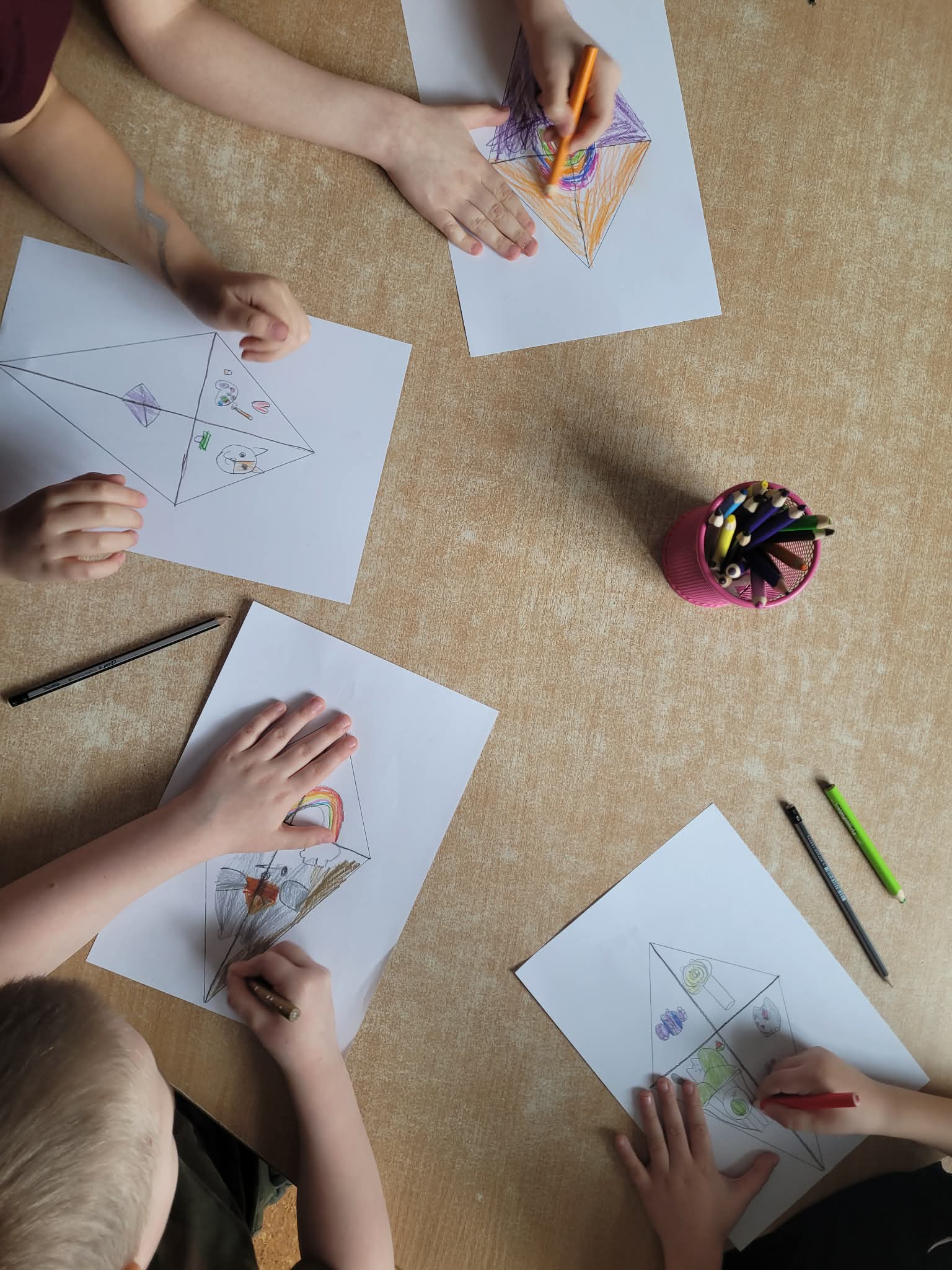 Grupa IV zapoznała się z historią liska Leona. Odpowiadaliśmy na pytania po odsłuchanej bajce. Wykonaliśmy pracę plastyczną "Latawiec Leona". Odgrywaliśmy scenki dramowe "Co zrobię gdy...". Rozmawialiśmy na temat pomocy i możliwości rozwiązania danych sytuacji. Rysowaliśmy nową emocje na kartce papieru. Omawialiśmy każdą z prac. Uczestniczyliśmy w zabawach ruchowych z nowo powstałymi latawcami.