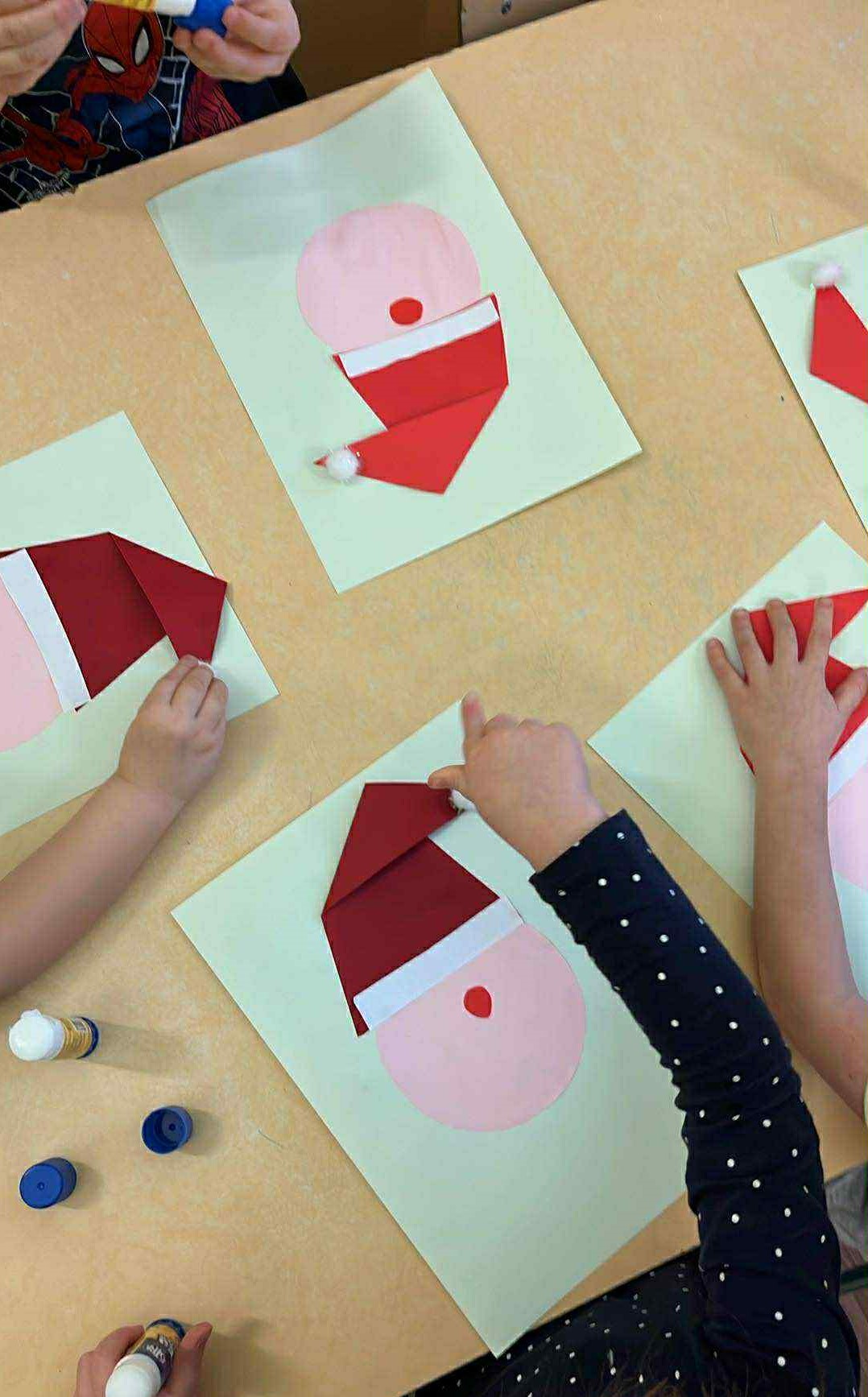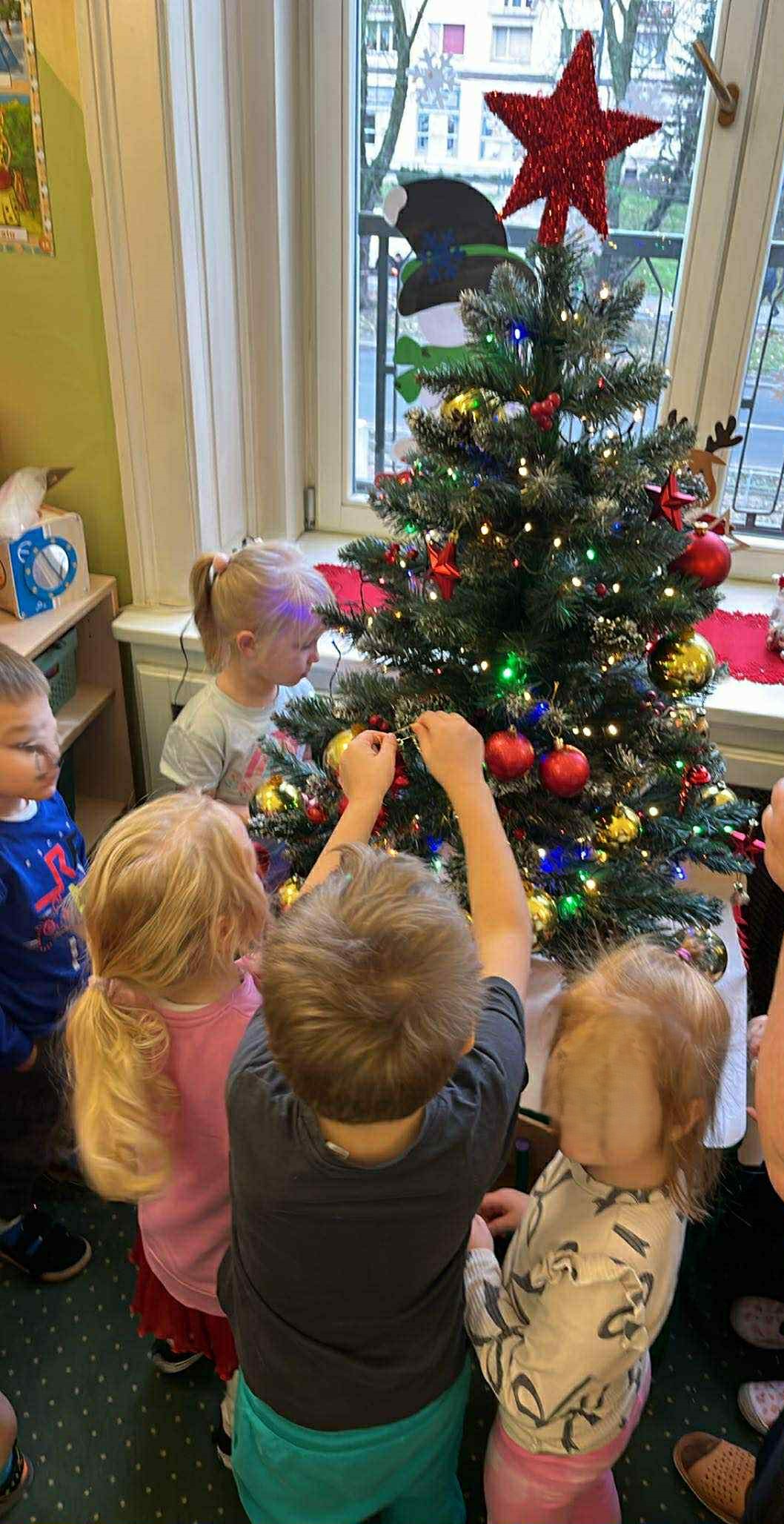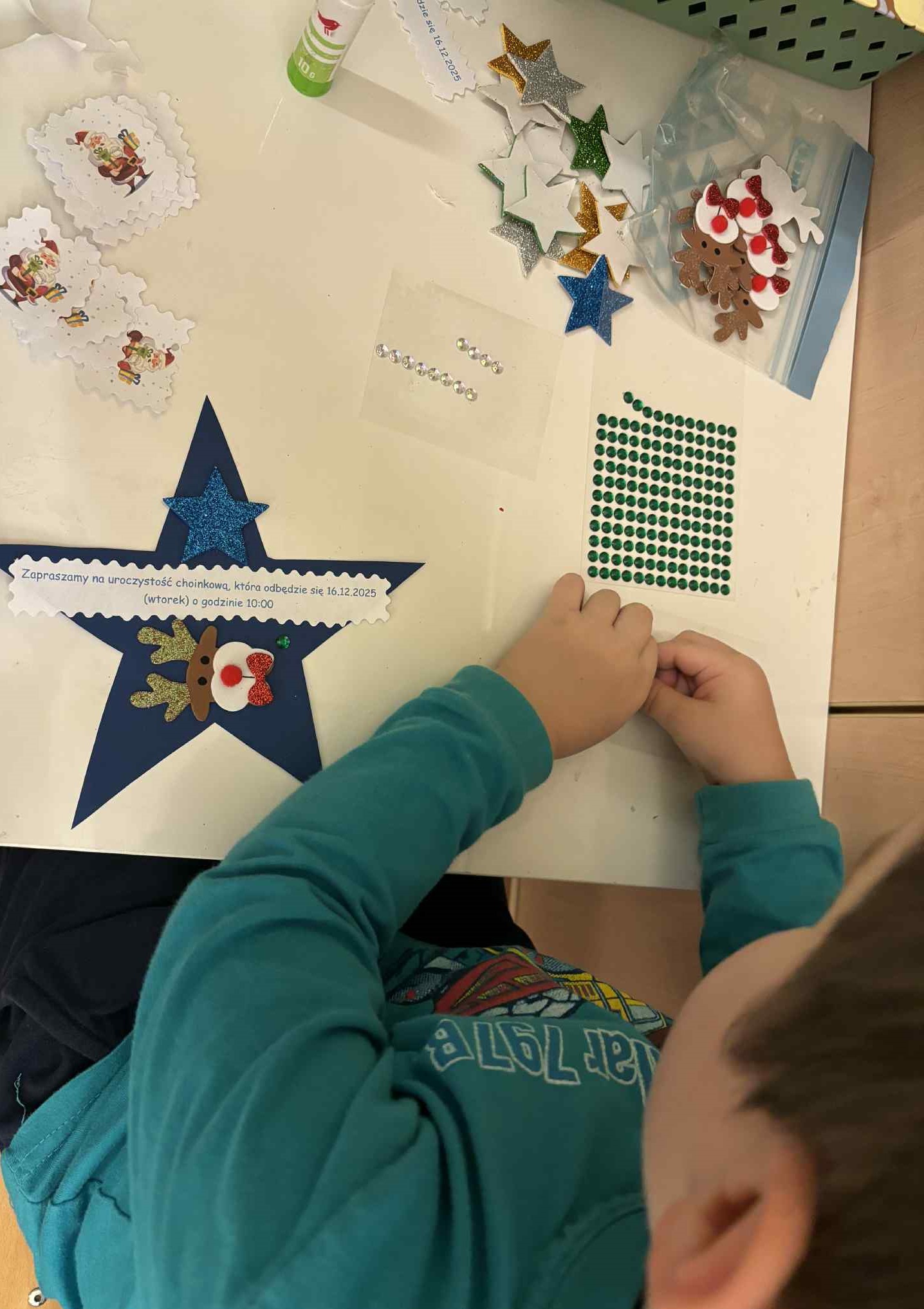 W pierwszym tygodniu grudnia nasza grupa poczuła już świąteczny klimat. Przy planszach edukacyjnych opisywała wygląd Świętego Mikołaja, opisywała jego charakterystyczne cechy. Wykonała prace plastyczną "Święty Mikołaj", do pracy dzieci wykorzystały czerwoną czapkę z papieru, kółka origami i watę. Pracowaliśmy również w książkach, gdzie wykonaliśmy ćwiczenia grafomotoryczne, uzupełnialiśmy karty pracy, łączyliśmy obrazki do cieni i watą udekorowaliśmy brodę Świętego Mikołaja. Bawiliśmy się też plastelinę, najpierw chętne dzieci lepiły bałwanki, a następnie cała grupa uzupełniania wybranym kolorem plasteliny puste pola na choince. Dla naszych wspaniałych rodziców robiliśmy zaproszenia na uroczystość choinką, dekorowaliśmy gwiazdkę naklejkami świątecznymi lub diamencikami. Oczywiście najfajniejszą atrakcją w tym tygodniu było wspólne ubieranie choinki !