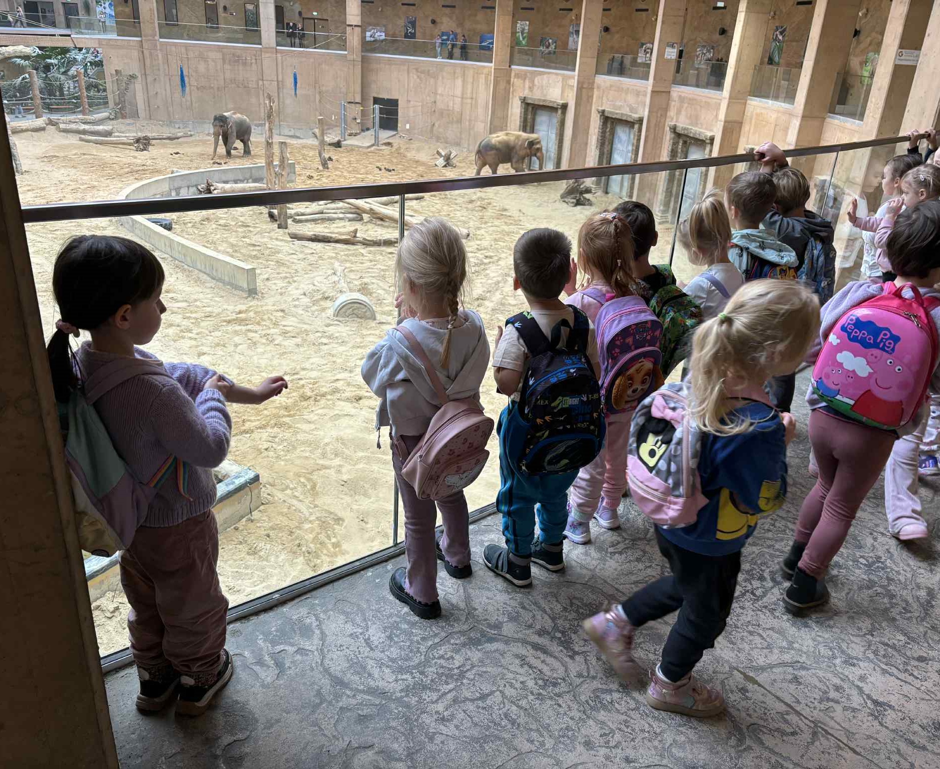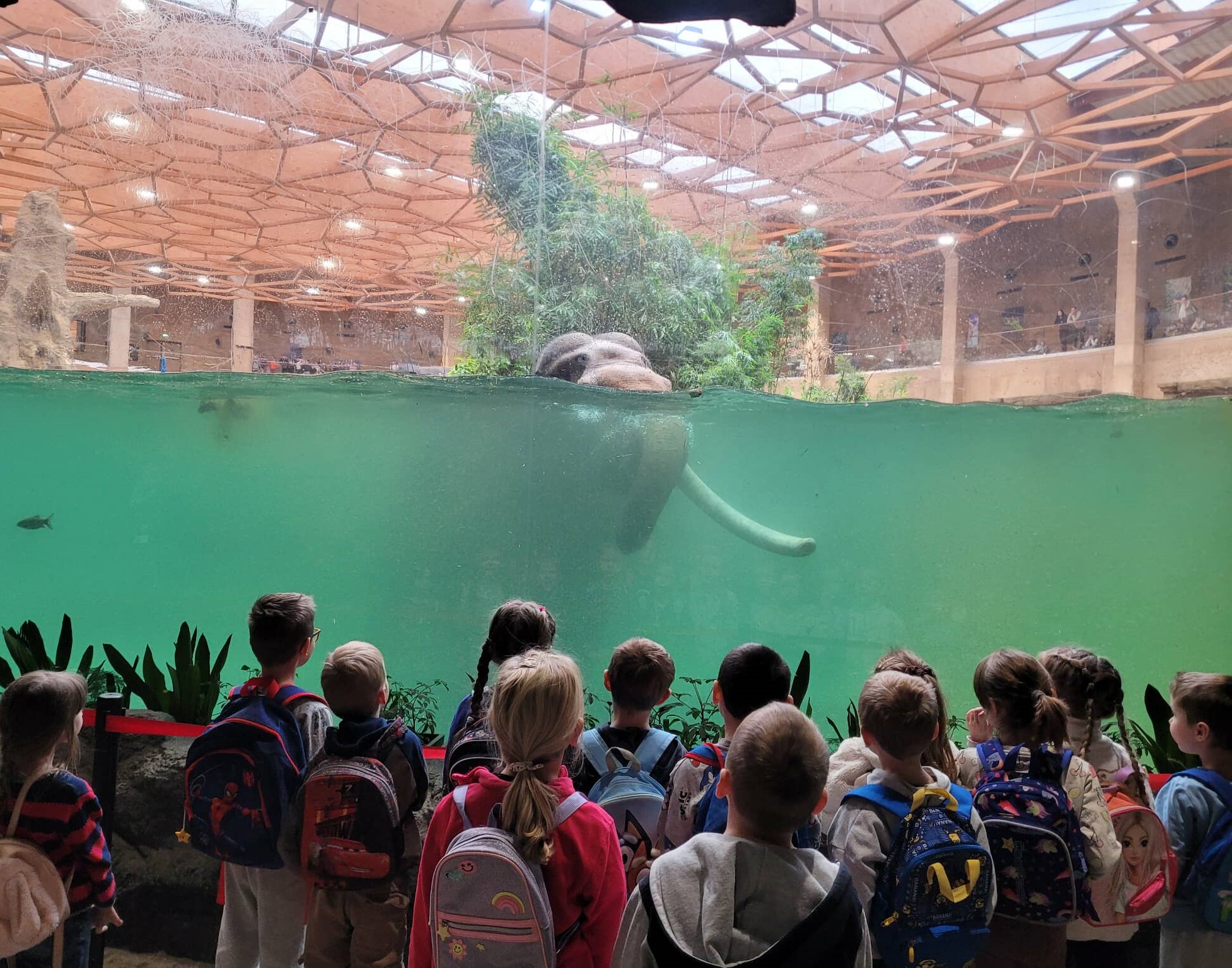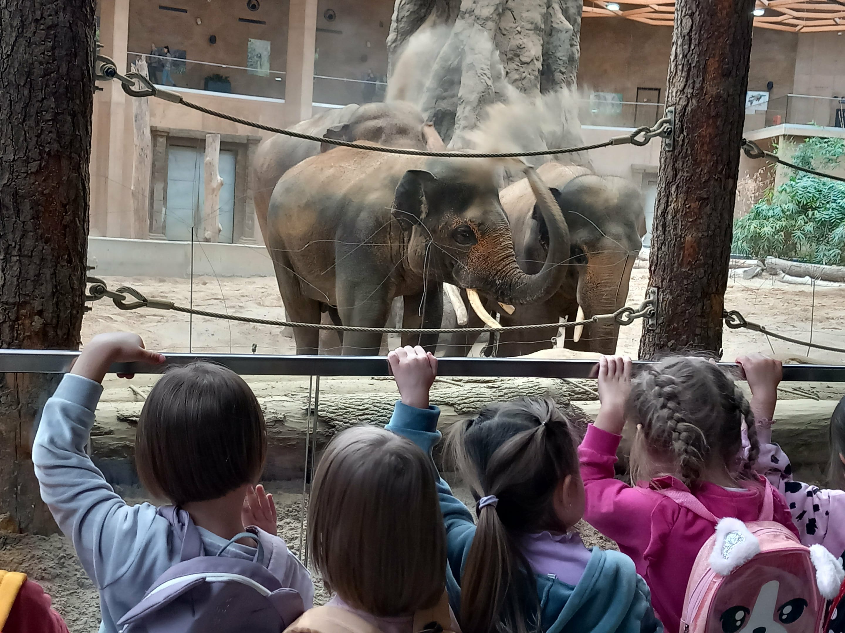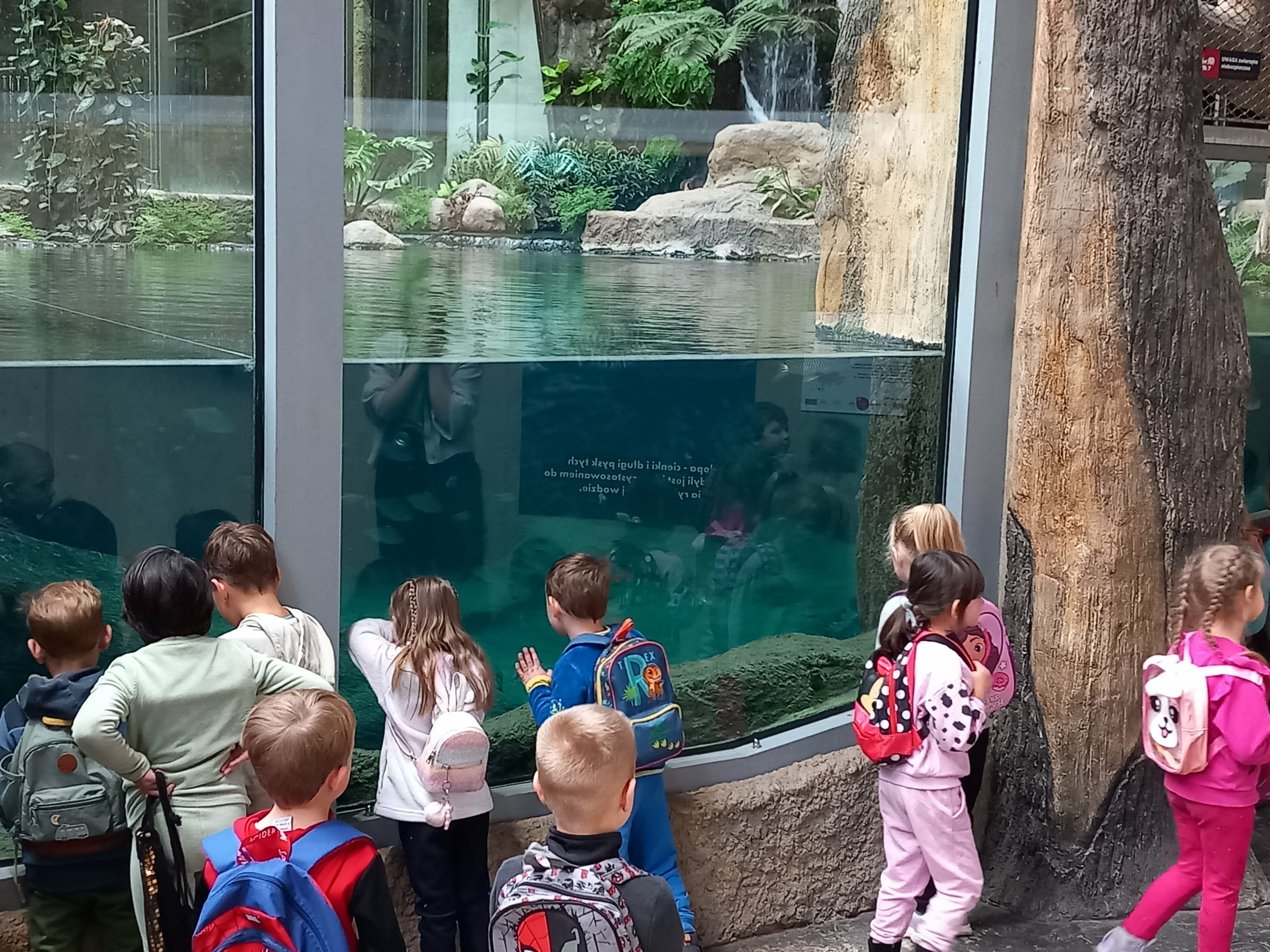 W piątek 21 listopada grupy II, III oraz IV wybrały się na autokarową wycieczkę do Zoo Orientarium. Przedszkolaki wyruszyły w pełną emocji podróż po świecie zwierząt, poznając ich zwyczaje oraz ciekawostki na ich temat. Podczas zwiedzania dzieci poznały gatunki zagrożone wyginięciem; dowiedziały się jak żyją rekiny oraz że wcale nie są takie straszne jak pokazują bajki. Obserwując zabawy małp dzieci dostrzegły ich spryt, ruchliwość oraz dowiedziały się, w jaki sposób wykorzystują swój ogon. Dzieci widziały także zwierzęta, które potrafią się kamuflować oraz żaby podobne do kamieni. Największą atrakcją było zobaczenie małej 2-tygodniowej małpki i jej mamy oraz pokazowe kąpanie słoni.