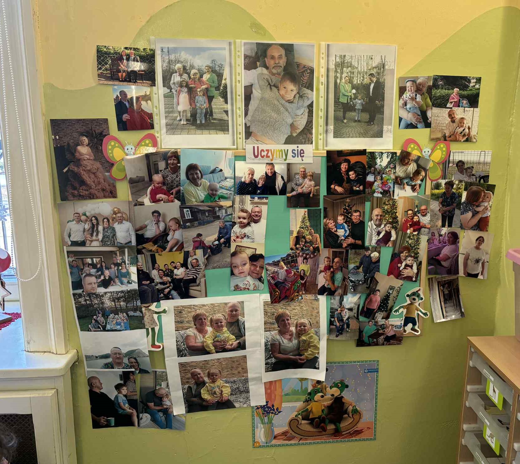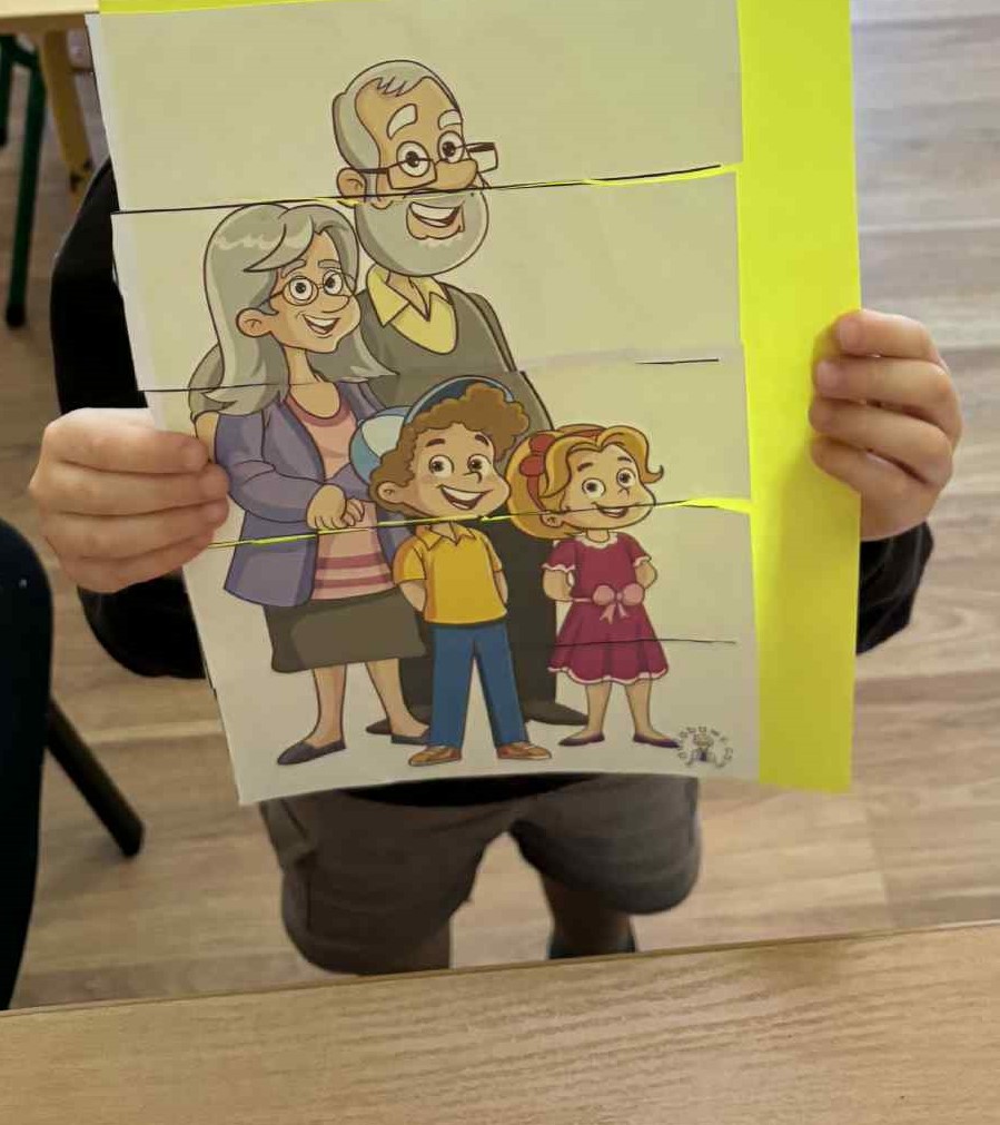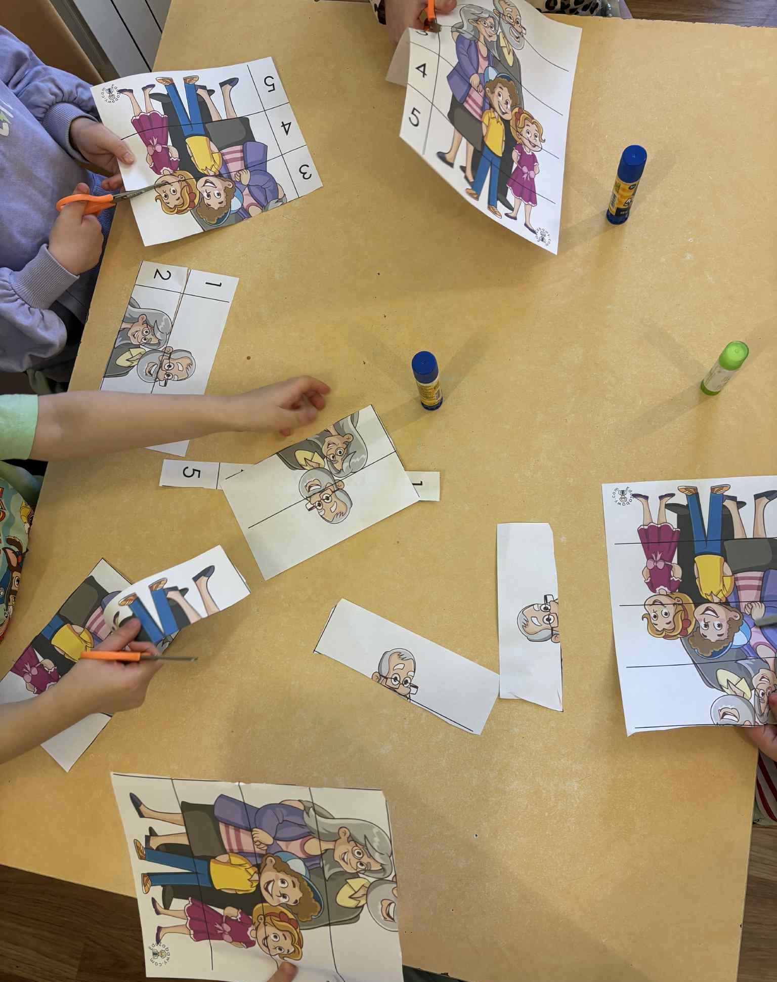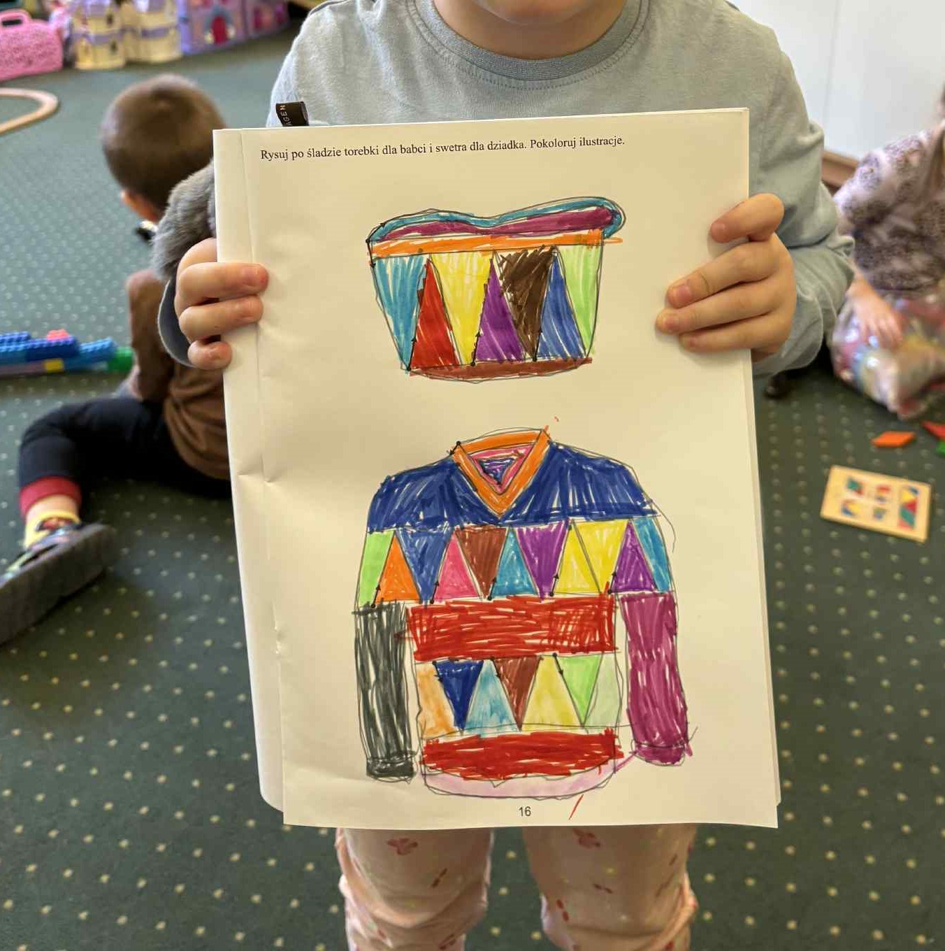W trzecim tygodniu stycznia przygotowaliśmy się do najpiękniejszego święta, na dzień babci i dziadka. Dla naszych wspaniałych dziadków przygotowaliśmy prezenty, serca z masy gipsowej, które pomalowaliśmy farbą i udekorowaliśmy według własnego pomysłu. W naszej grupie powstał kącik rodzinny, chętne dzieci przyniosły zdjęcia ze swoimi dziadkami. Podczas pokazywania grupie zdjęć, dzieci podawały imiona swoich dziadków, opisywały ich wygląd oraz wspólny spędzony czas. Nie zabrakło również różnych prac do zrobienia po wspólnych zajęciach i zabawach. Układaliśmy rozsypane puzzle "Portret dziadków", które najpierw samodzielnie wycinaliśmy, a następnie przyklejaliśmy na kartę, wykonaliśmy prace plastyczną "Moja babcia i mój dziadek". Do tej pracy wykorzystaliśmy pastele, małe kółka origami, bibułę i włóczki, każdy z nas samodzielnie wykonał portret dziadków. W książce z ćwiczeń grafomotorycznych, musieliśmy po śladzie rysować ołówkiem, a następnie babci torebkę i dziadka sweter pokolorowaliśmy kredkami lub mazakami według własnego pomysłu. W środę odbyła się uroczystość dla naszych dziadków, podczas uroczystości dzieci zaprezentowały, krótki program artystyczny, podczas którego recytowały wiersze, śpiewały piosenkę oraz zatańczyły świąteczny taniec. Po występie i rozdaniu prezentu, wspólnie zasiedliśmy do słodkiego poczęstunku i indywidualnych rozmów. Przed uroczystością każdy z nas wykonał zaproszenia dla dziadków, wycięte serduszka udekorowaliśmy według własnego pomysłu, wykorzystaliśmy do tego naklejki i diamenty. Na koniec tygodnia bawiliśmy się plasteliną, wykorzystaliśmy ją do karty pracy, gdzie drogę od dziadka do babci musieliśmy uzupełnić wybraną plasteliną.