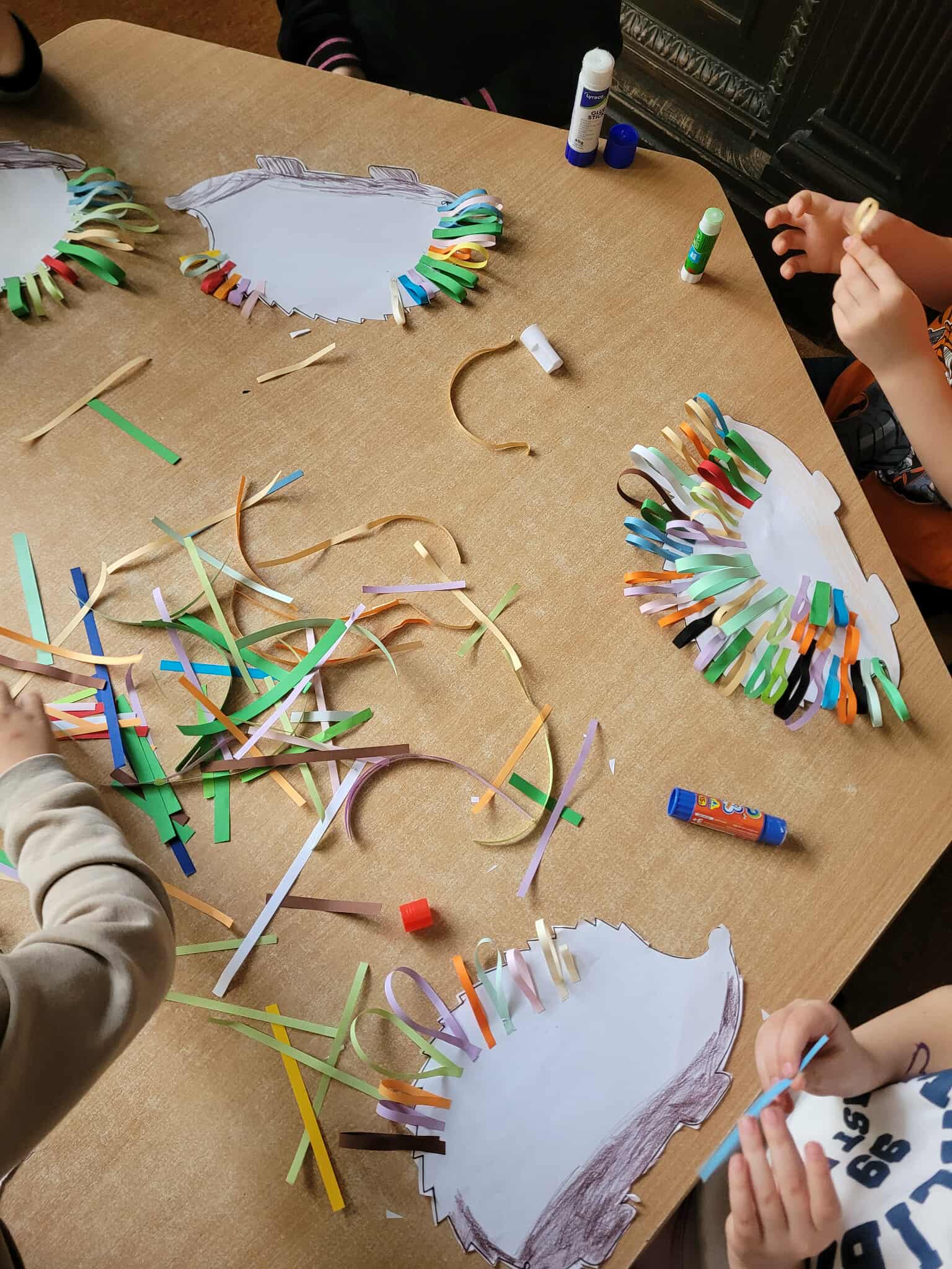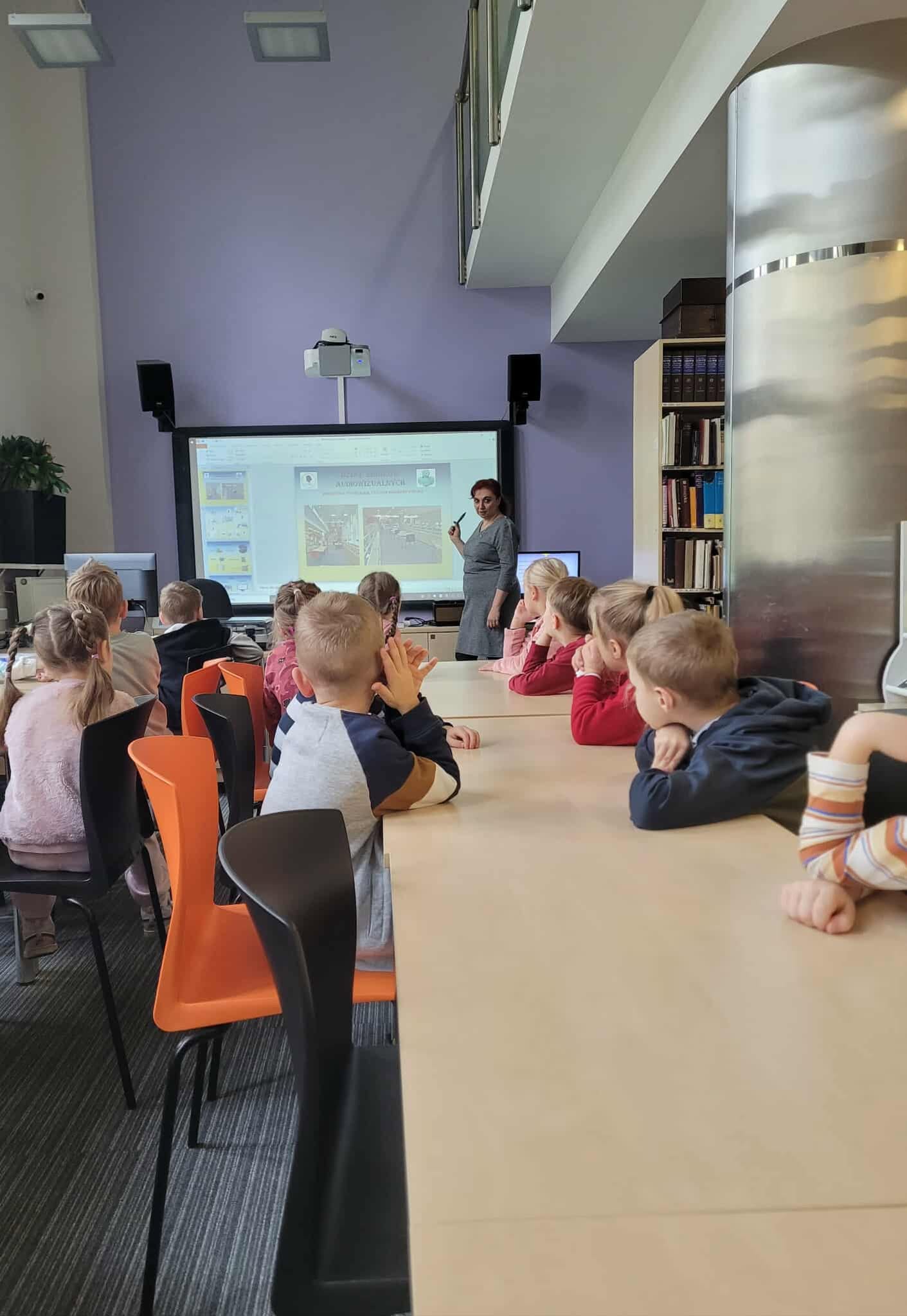 W minionym tygodniu grupa odwiedziła Wojewódzką Bibliotekę Publiczną i brała udziału w zajęciach pt.: "Z kodowaniem na Ty". Zapoznaliśmy się z literką "M" i cyferką "4". Ozdabialiśmy kształt litery za pomocą farb. Wykonywaliśmy wiele zabaw ruchowych zawierających cyfrę "4". Grupa wyszła na warsztaty kosmiczne do księgarni "Zaczytana Łódka" i wykonała własne planety. Stworzyliśmy pracę plastyczną "Jeżyk" z wykorzystaniem pasków z kolorowego papieru, nożyczek i kleju.