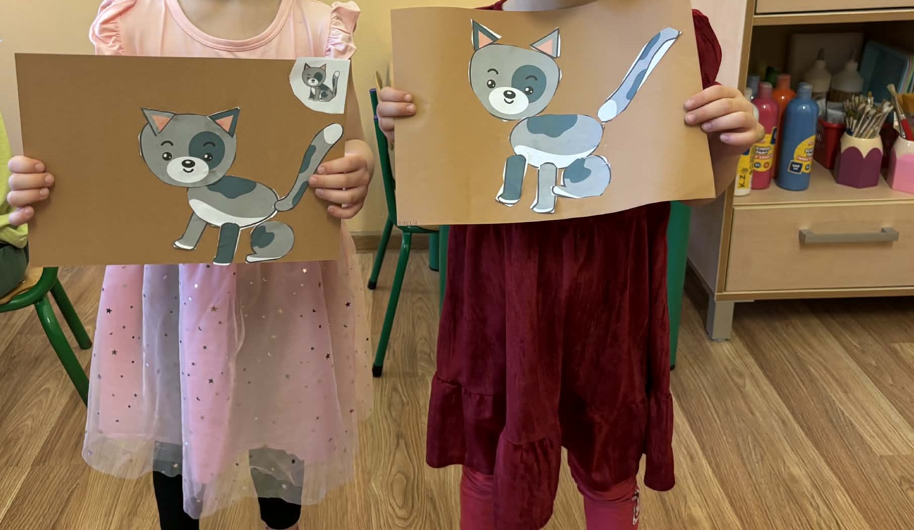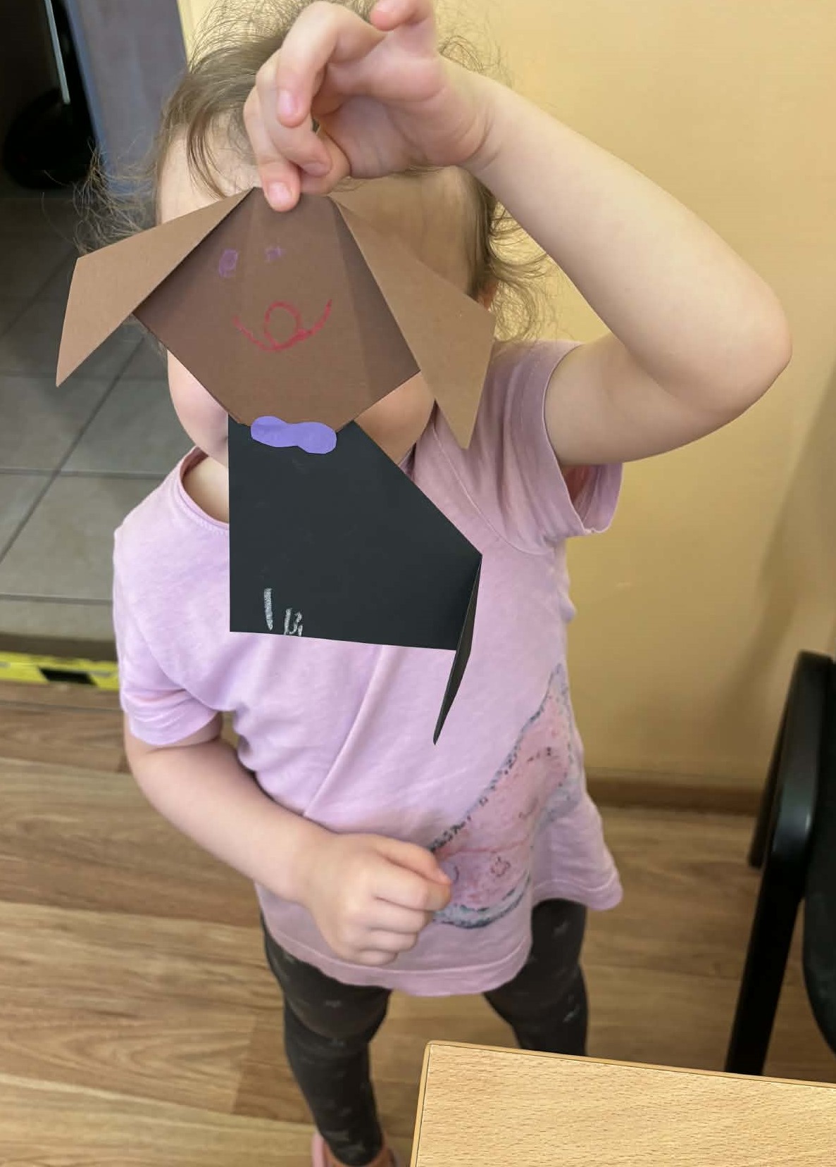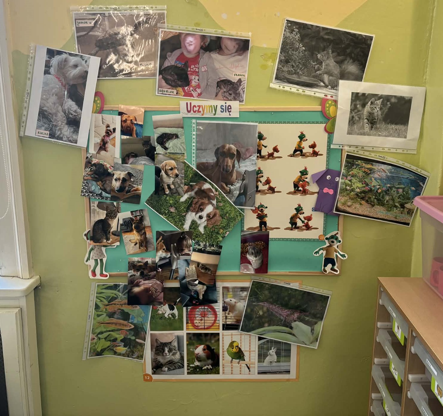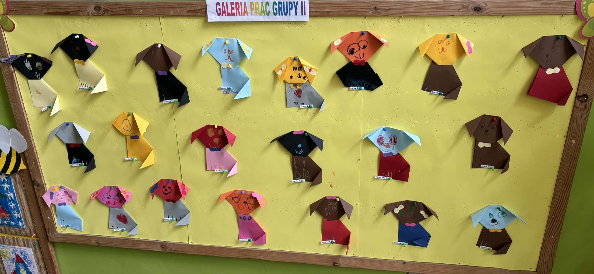 W kolejnym tygodniu kwietnia nasza grupa wymieniała zwierzęta domowe, przypomnieliśmy sobie sposoby dbania o zwierzęta hodowane w domu. Podczas zabawa ruchowych naśladowaliśmy sposoby poruszania się zwierząt domowych i ich głosy. Chętne dzieci przyniosły zdjęcia swoich zwierząt, opisywały jakie mają zwierzątko, jak o nie dbają i jak ich ukochany pupili się nazywa, dzięki zdjęciom mogliśmy stworzyć w naszej grupie "Kącik domowych pupili". Wykonaliśmy prace plastyczną "Pies", praca powstała z kartek do origami, brakujące elementy psa (pyszczek, łapki) domalowaliśmy pastelami. Nie zabrakło ćwiczeń grafomotorycznych, kart pracy matematycznych i logicznych.
