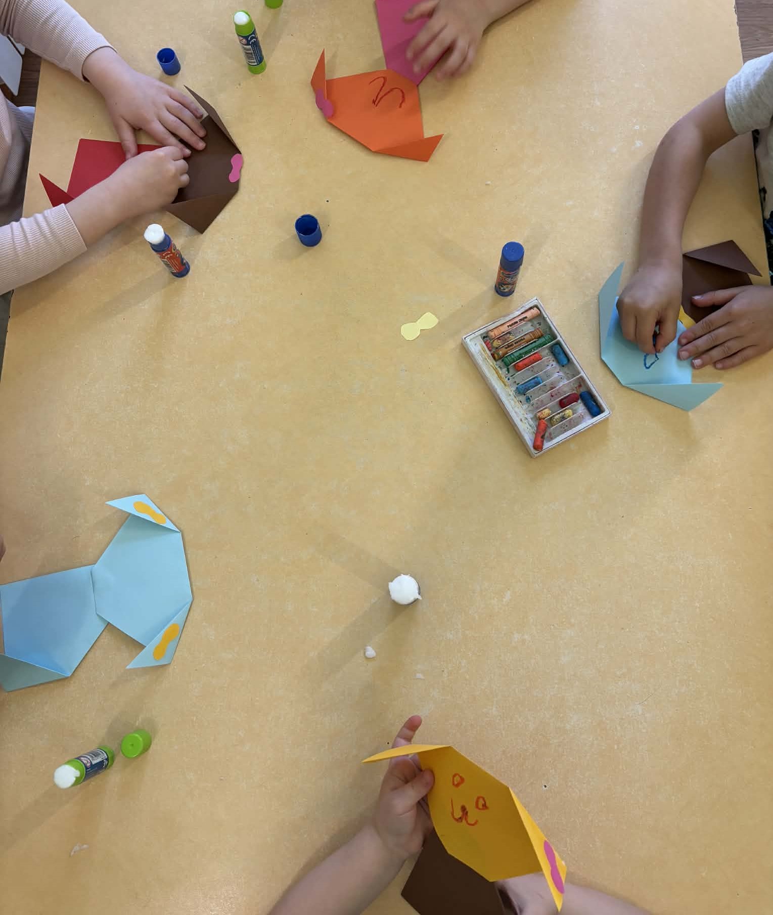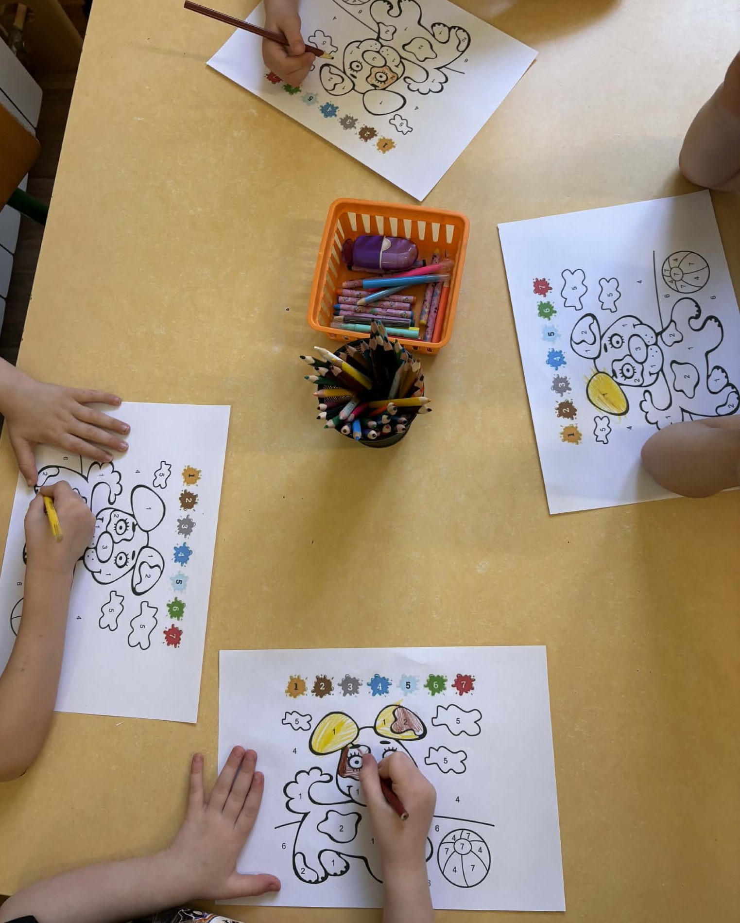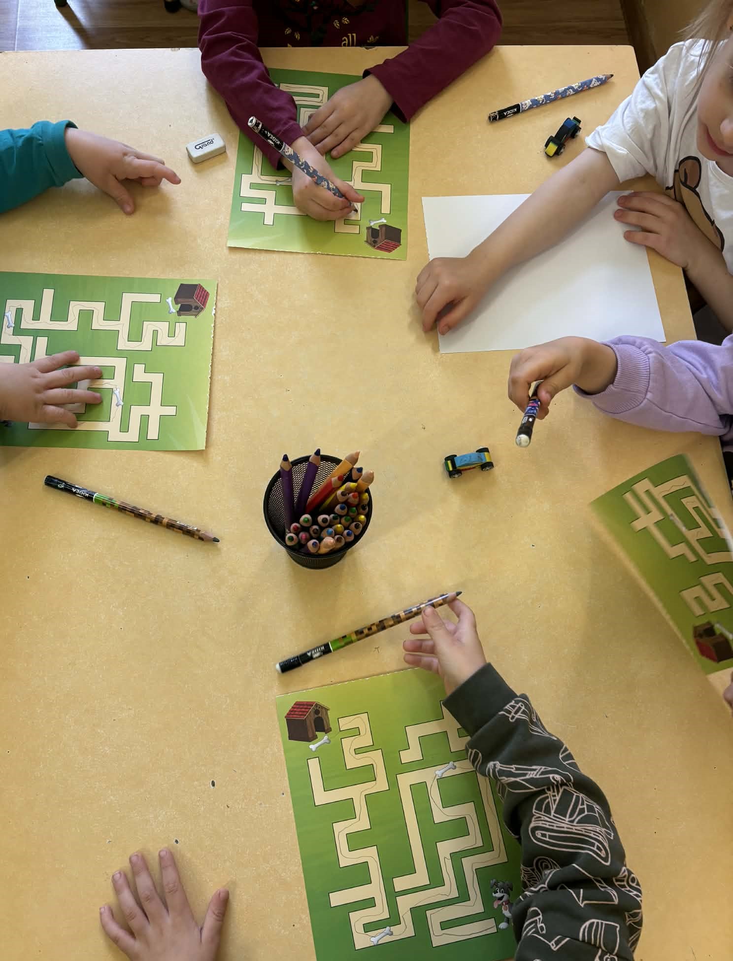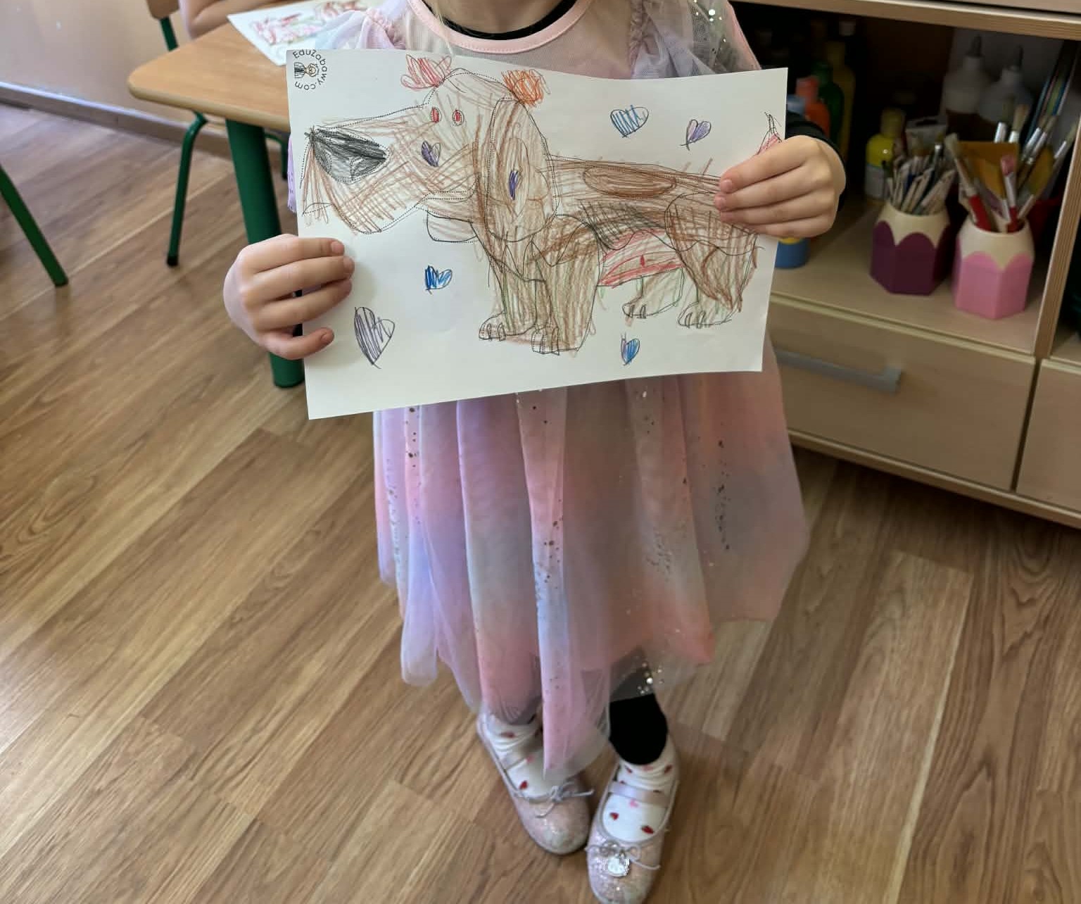 W kolejnym tygodniu kwietnia nasza grupa wymieniała zwierzęta domowe, przypomnieliśmy sobie sposoby dbania o zwierzęta hodowane w domu. Podczas zabawa ruchowych naśladowaliśmy sposoby poruszania się zwierząt domowych i ich głosy. Chętne dzieci przyniosły zdjęcia swoich zwierząt, opisywały jakie mają zwierzątko, jak o nie dbają i jak ich ukochany pupili się nazywa, dzięki zdjęciom mogliśmy stworzyć w naszej grupie "Kącik domowych pupili". Wykonaliśmy prace plastyczną "Pies", praca powstała z kartek do origami, brakujące elementy psa (pyszczek, łapki) domalowaliśmy pastelami. Nie zabrakło ćwiczeń grafomotorycznych, kart pracy matematycznych i logicznych.